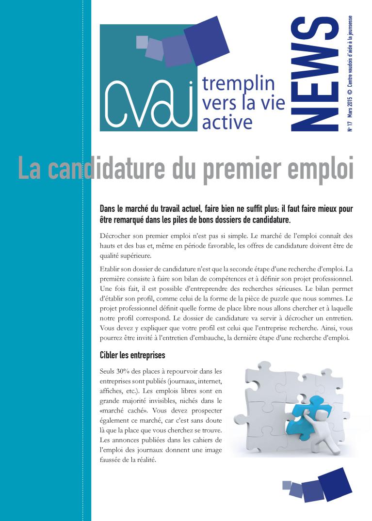 Avec le cours Tremplin vers la vie active, le CVAJ propose aux jeunes en fin de formation d’obtenir des informations utiles, des conseils pratiques et une aide adaptée la recherche de leur premier emploi.